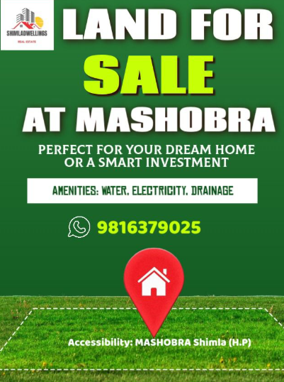 A premium 37 biswa land parcel is available for sale in the highly sought-after and scenic location of Mashobra, offering an exceptional opportunity for hospitality investors and developers. This on-road property provides excellent visibility, easy access, and smooth connectivity, making it a perfect site for building a hotel, resort, boutique stay, cottages, or luxury retreat. Surrounded by serene mountains and lush greenery, the area attracts tourists year-round, ensuring high commercial potential and strong future returns. The location is peaceful yet strategically positioned, making it ideal for a high-end hospitality project. With increasing demand for quality accommodation in Shimla’s prime outskirts, this land offers enormous growth and investment advantages.