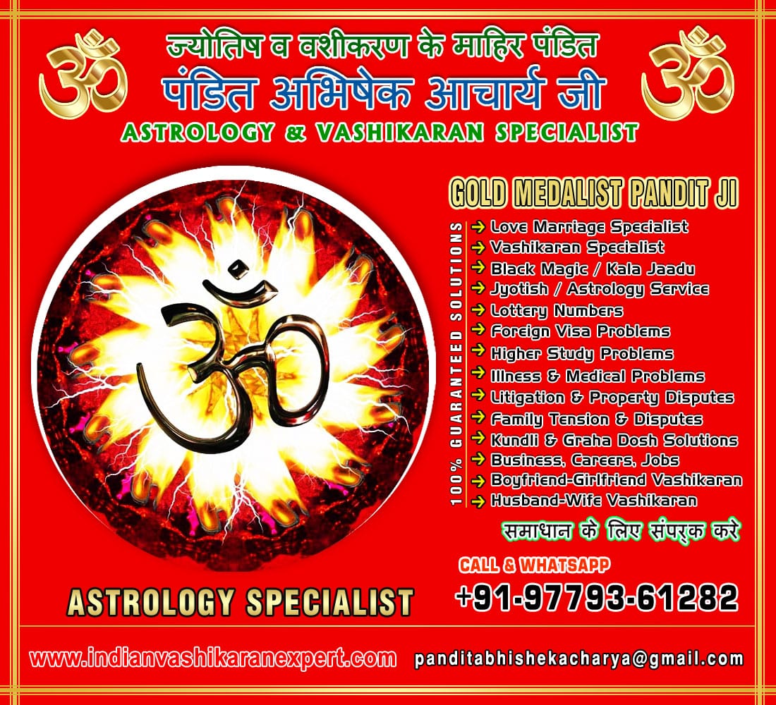 Pandit Abhishek Acharya is Indian Vashikaran specialist has expertise in Voodoo Black Magic Specialist, Get your Love Back, Love Guru Specialist, Get Back your Love, Love Breakup Solutions, Get Back your Love with Vashikaran, Get back your Lover, Women Love Vashikaran, Love with Vashikaran, Vashikaran Love Guru, Black Magic Guru Ji, Vashikaran Specialist, Vashikaran Baba Ji, Love Guru Tantrik, Black Magic Baba Ji, Kala Jadu Specialist, Women Vashikaran, Girlfriend Vashikaran, Boyfriend Vashikaran, Tantrik Baba Ji, Vashikaran Love Guru Ji, Astrology Solutions, Tantrik Expert Guru Ji, Black Magic Kala Jadu, Jyotish Specialist, Tantra Mantra Baba Ji, Vashikaran Specialist Guru Ji, Havan Pandit, Yagya Pooja Pandit, Kudli Dosh Solutions Expert, Match Making Specialist, Love Marriage Specialist, Indian Vashikaran Baba Ji, Horoscope Specialist, Kundli Dosh Solutions, Family Disputes Solutions, Love Sex Children Solutions, Vashikaran Expert, Higher Study Solutions, Tension Anxiety Solutions, Love Marriage Solutions, Business Loss Solutions, Foreign Visa Solutions, Illness Medical Problem Solutions, Kala Jadu Vashikaran, Property Disputes Solutions, Lottery Number Solutions, Get Your Love Back Mantra, Top Best Astrologers in Ludhiana, Amritsar, Jalandhar, Patiala, Bathinda, Ajitgarh, Hoshiarpur, Batala, Pathankot, Moga, Abohar, Khanna, Phagwwara, Muktsar, Barnala, Rajpura, Firozpur, Kapurthala, mandi gobindgarh, fatehgarh sahib, samrala, jagraon, mansa, sirhind, chandigarh, Mohali, panchkula, kharar, Punjab, Delhi, Haryana, Gurgaon, Utter Pradesh, Bihar, India, Canada, USA, Australia, UK, New Zealand, France, Norway, France, Nepal https://www.indianvashikaranexpert.com contact numbers +91-9779361282 panditabhishekacharya@gmail.com