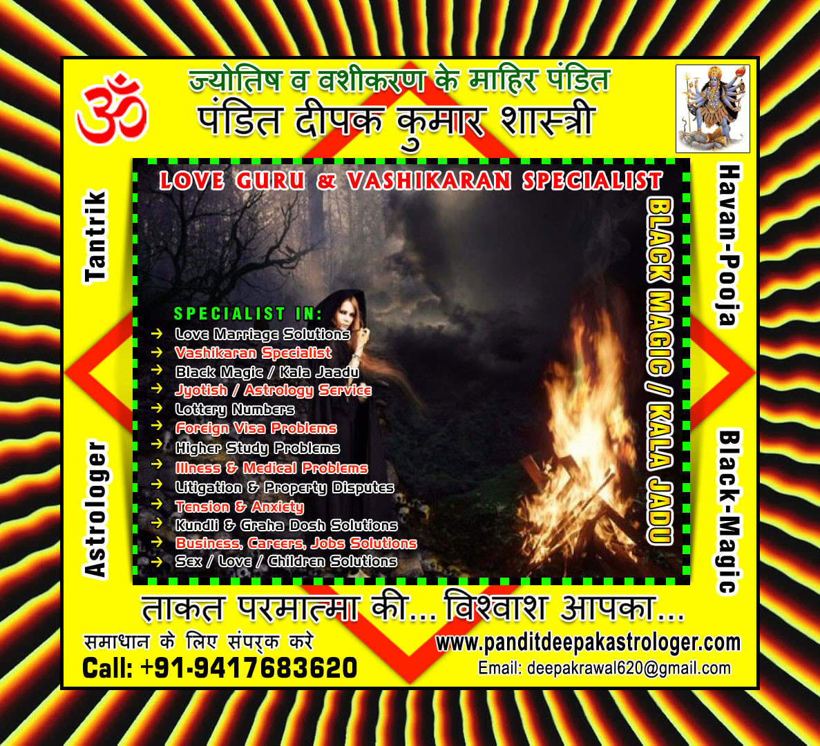 Pandit Deepak Kumar is Indian Vashikaran specialist in Get your Love Back, Love Guru Specialist, Get Back your Love, Love Breakup Solutions, Get Back your Love with Vashikaran, Get back your Lover, Women Love Vashikaran, Love with Vashikaran, Vashikaran Love Guru, Black Magic Guru Ji, Vashikaran Specialist, Vashikaran Baba Ji, Love Guru Tantrik, Black Magic Baba Ji, Kala Jadu Specialist, Women Vashikaran, Girlfriend Vashikaran, Boyfriend Vashikaran, Tantrik Baba Ji, Vashikaran Love Guru Ji, Astrology Solutions, Tantrik Expert Guru Ji, Black Magic Kala Jadu, Jyotish Specialist, Tantra Mantra Baba Ji, Vashikaran Specialist Guru Ji, Havan Pandit, Yagya Pooja Pandit, Kudli Dosh Solutions Expert, Match Making Specialist, Love Marriage Specialist, Indian Vashikaran Baba Ji, Horoscope Specialist, Kundli Dosh Solutions, Family Disputes Solutions, Love Sex Children Solutions, Vashikaran Expert, Higher Study Solutions, Tension Anxiety Solutions, Love Marriage Solutions, Business Loss Solutions, Foreign Visa Solutions, Illness Medical Problem Solutions, Kala Jadu Vashikaran, Property Disputes Solutions, Lottery Number Solutions, Get Your Love Back Mantra, Top Best Astrologers in Ludhiana, Amritsar, Jalandhar, Patiala, Bathinda, Ajitgarh, Hoshiarpur, Batala, Pathankot, Moga, Abohar, Khanna, Phagwwara, Muktsar, Barnala, Rajpura, Firozpur, Kapurthala, mandi gobindgarh, fatehgarh sahib, samrala, jagraon, mansa, sirhind, chandigarh, Mohali, panchkula, kharar, Punjab, Delhi, Haryana, Gurgaon, Utter Pradesh, Bihar, India, Canada, USA, Australia, UK, New Zealand, France, Nepal http://www.panditdeepakastrologer.com contact numbers +91-9417683620, +91-9888821453 deepakrawal620@gmail.com