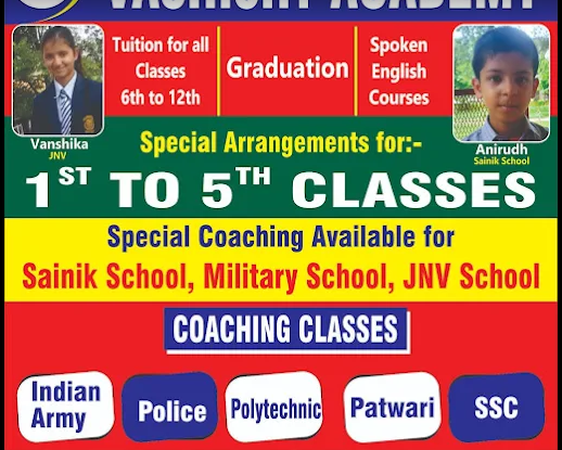 Vashisht Academy stands as one of the best tuition and coaching institutes in Hamirpur, dedicated to providing high-quality education and personalized learning experiences. With a focus on academic excellence, we offer expert coaching for school subjects, board exams, and competitive tests like JEE, NEET, NDA, and more. Our experienced faculty ensures conceptual clarity through innovative teaching methods, interactive sessions, and regular assessments. At Vashisht Academy, we believe in nurturing each student’s potential through discipline, motivation, and mentorship. Our modern classrooms, comprehensive study material, and supportive environment make learning effective and enjoyable. Whether you’re aiming for top grades or competitive success, Vashisht Academy provides the perfect platform to achieve your goals — empowering students to learn, perform, and excel with confidence.